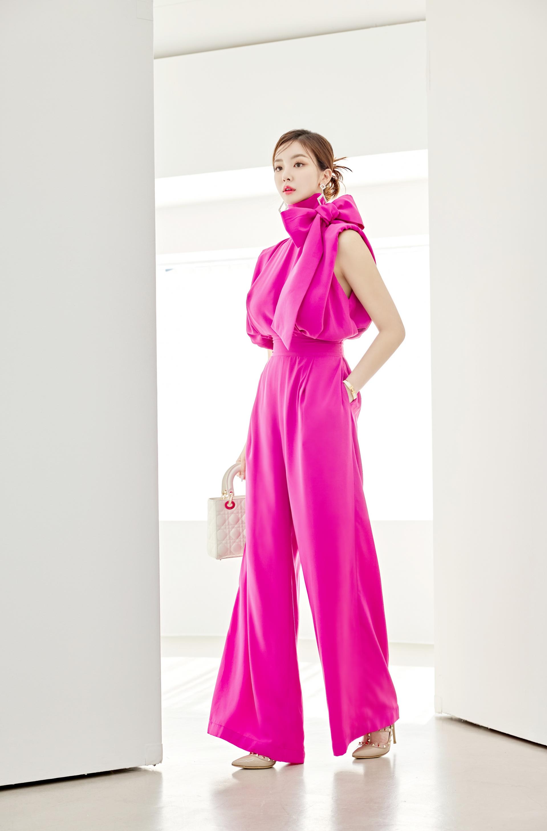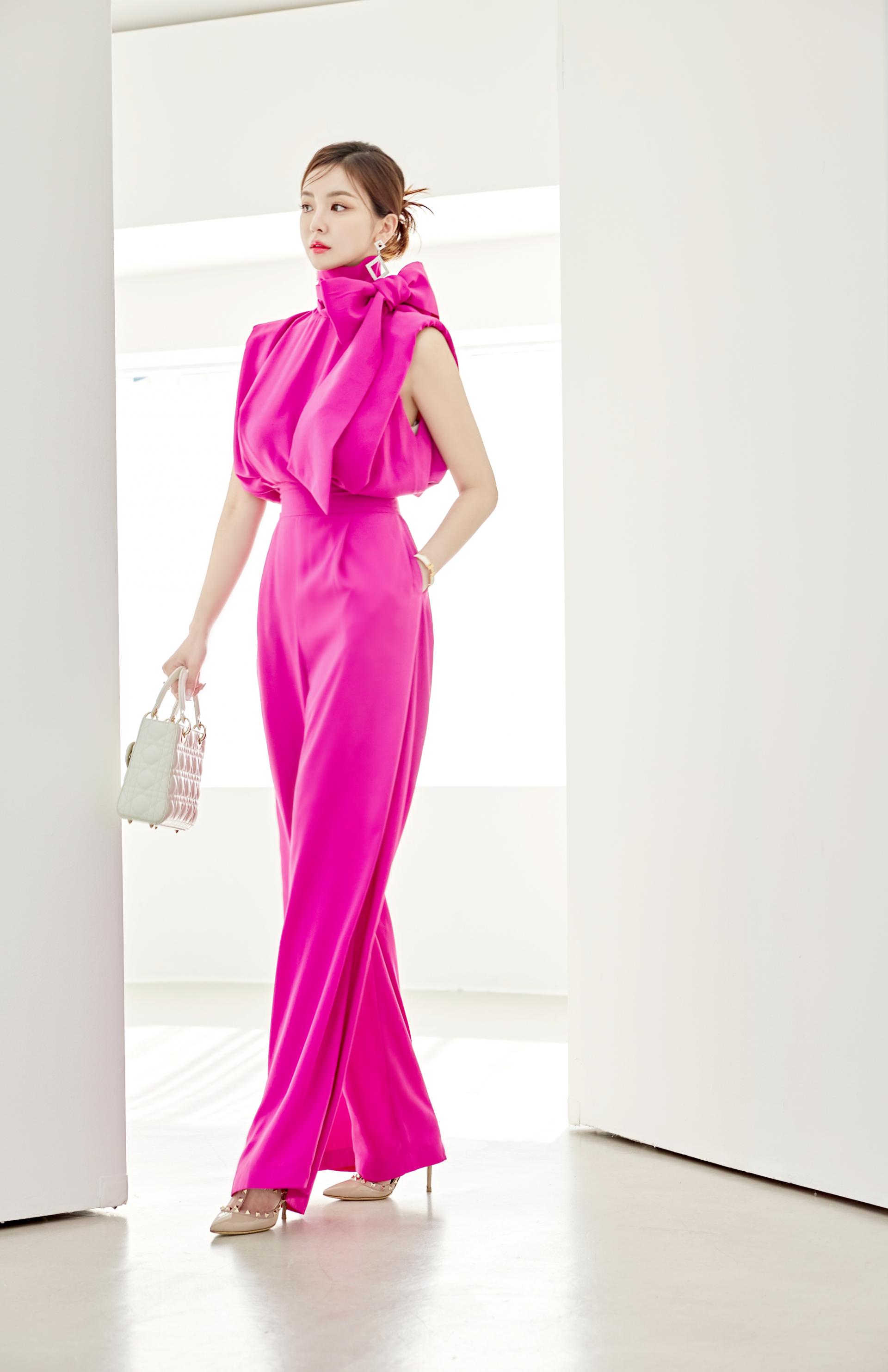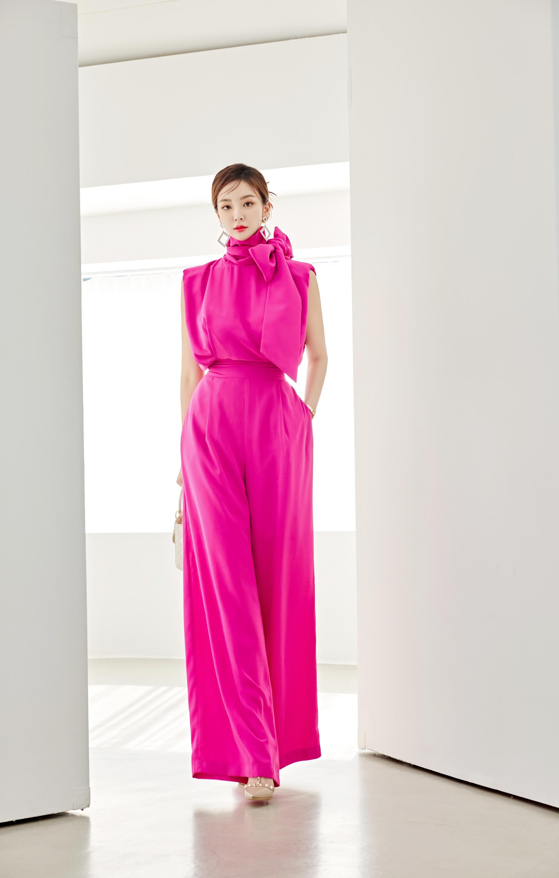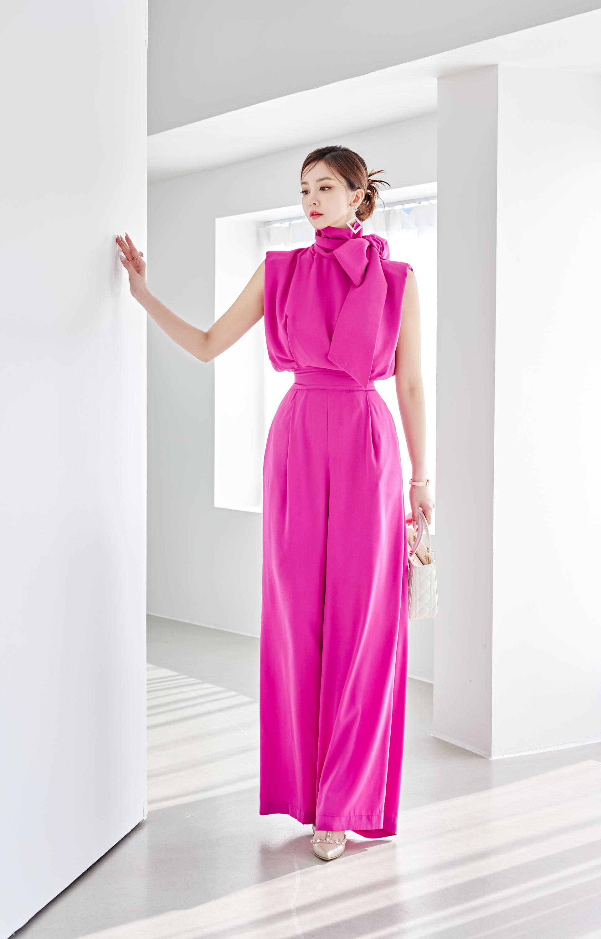 넥라인에 자리한 입체적인 큰리본이 고급스러운 분위기를 더합니다.
