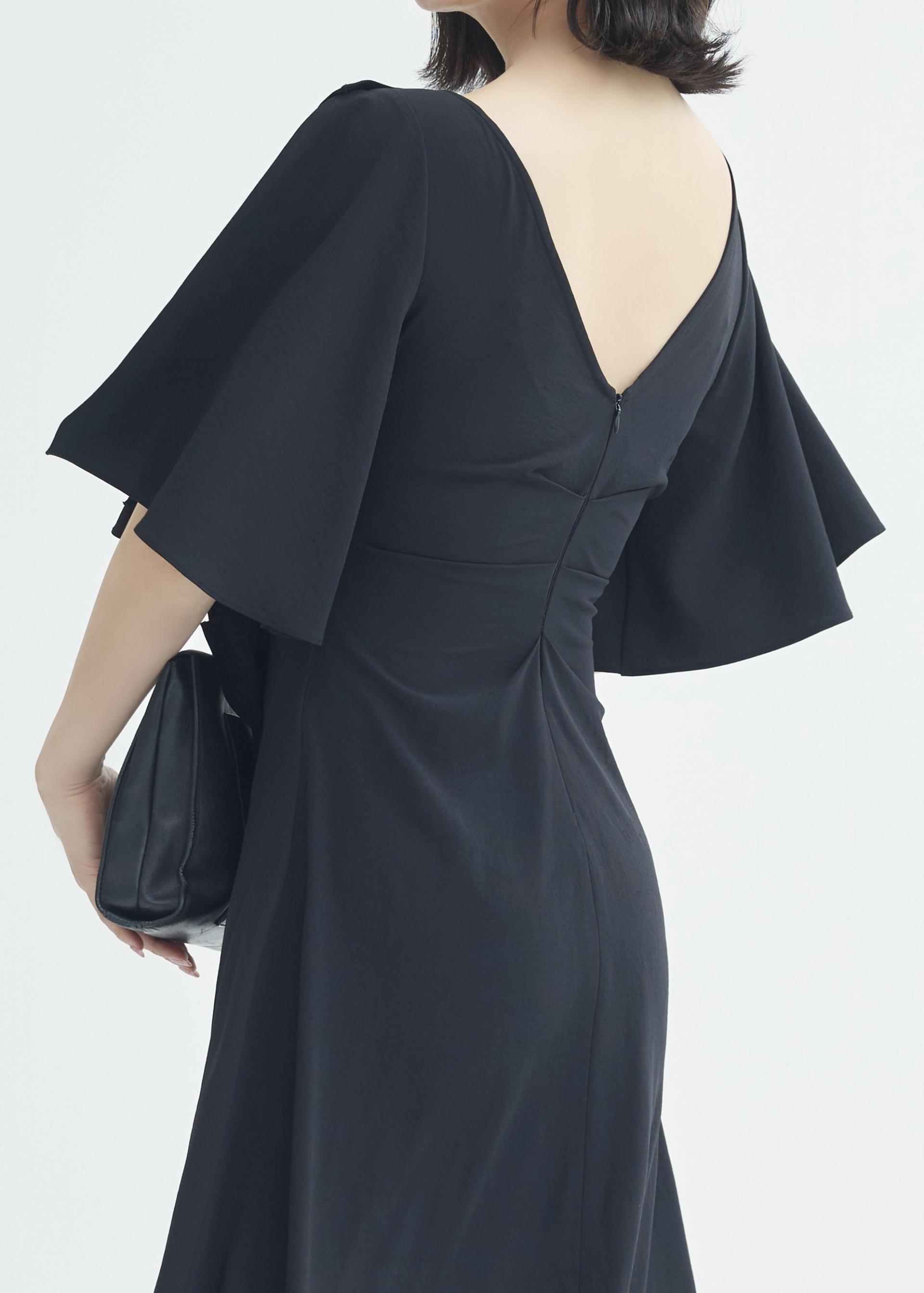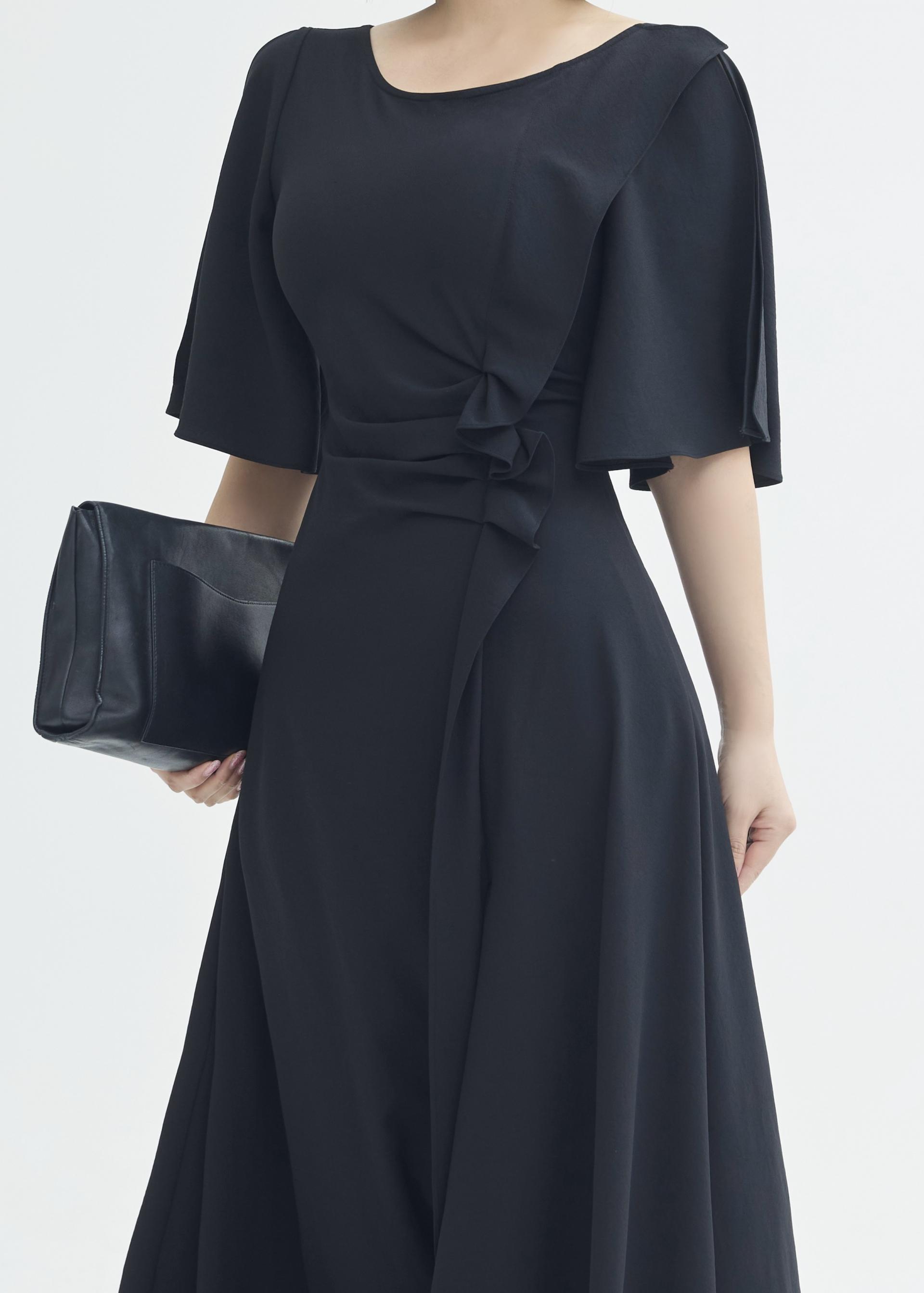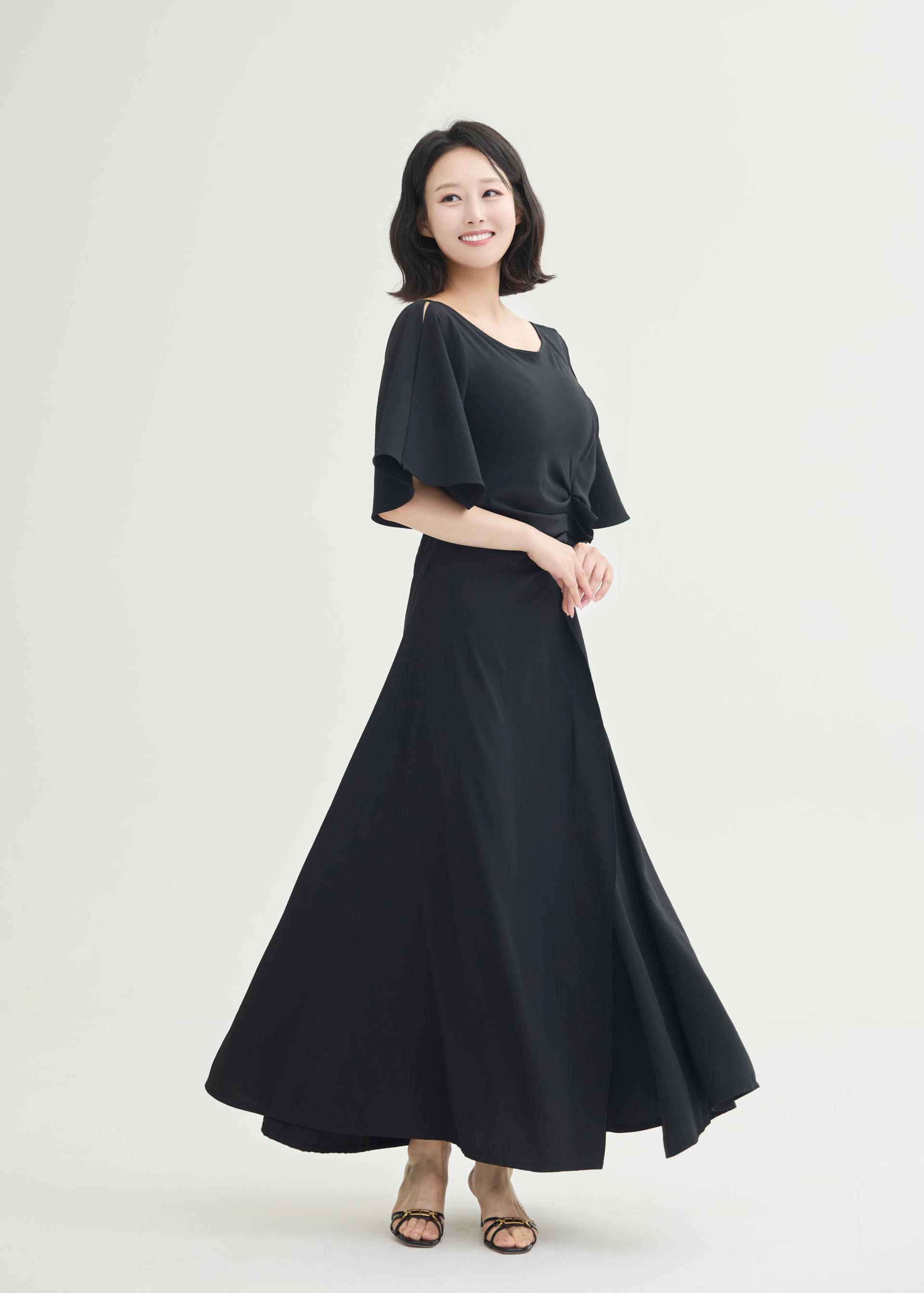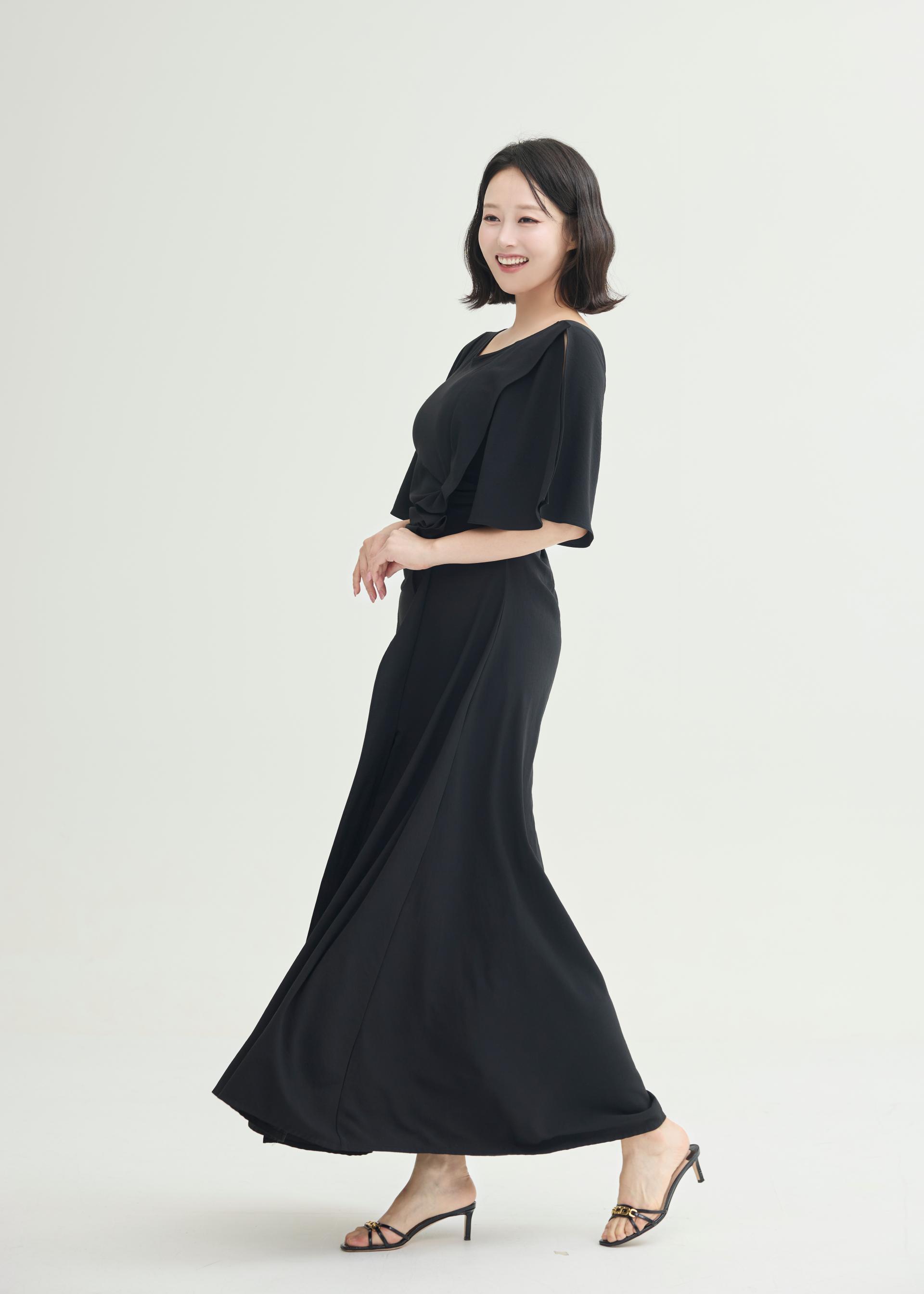한밤의 우아함을 담은 미드나잇 셔링 롱 원피스.
