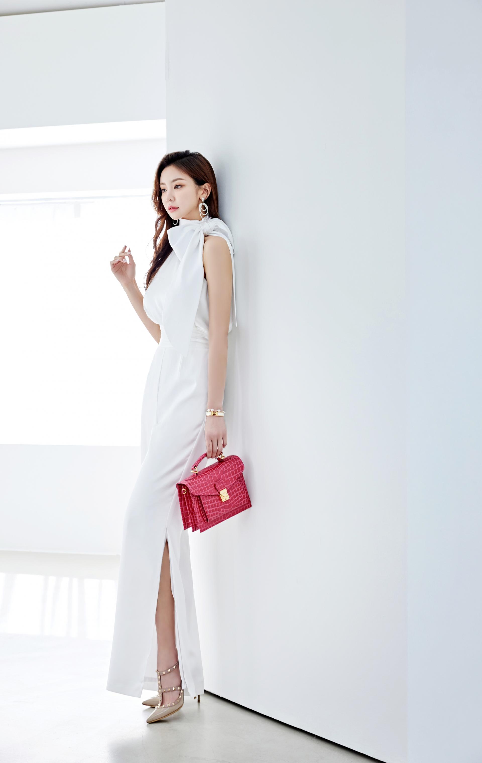 우아함과 세련미를 동시에 담은 화이트 점프슈트.