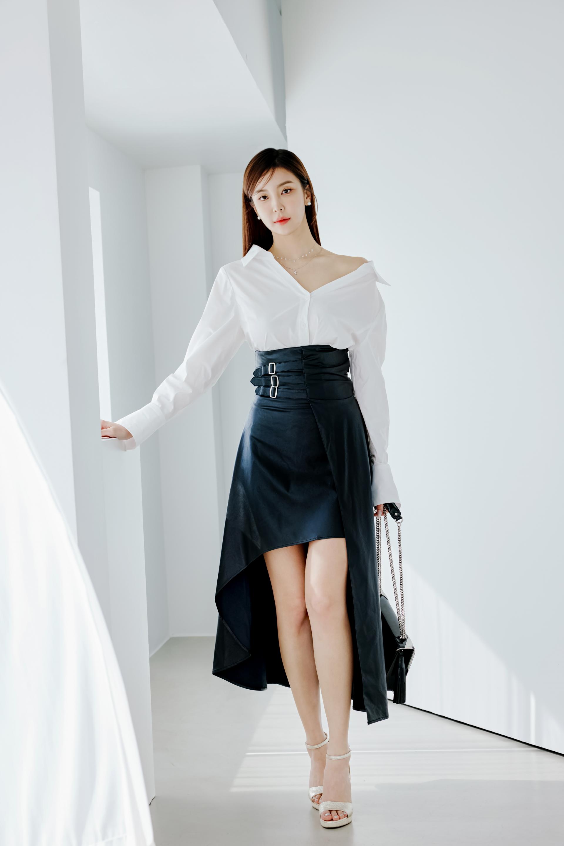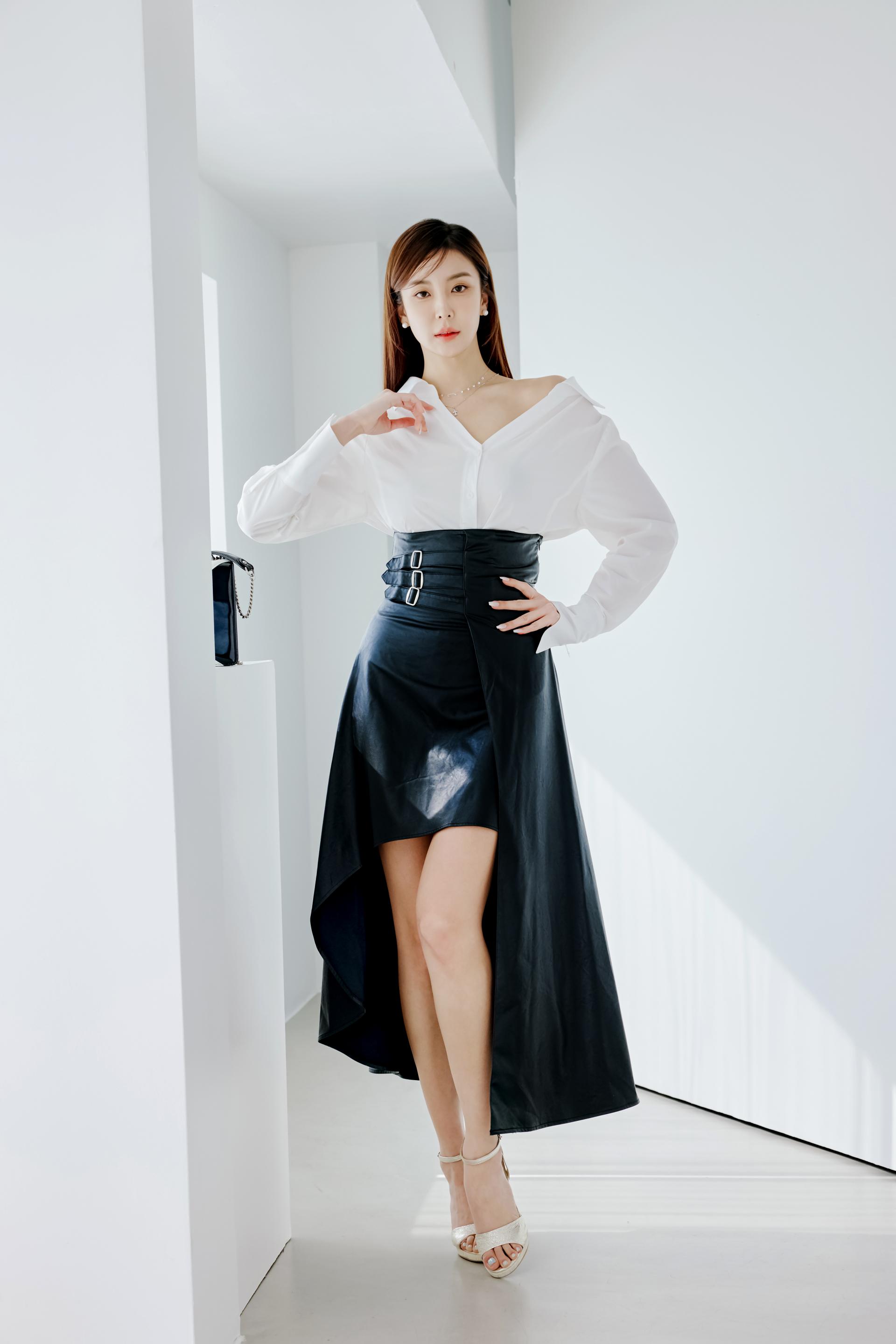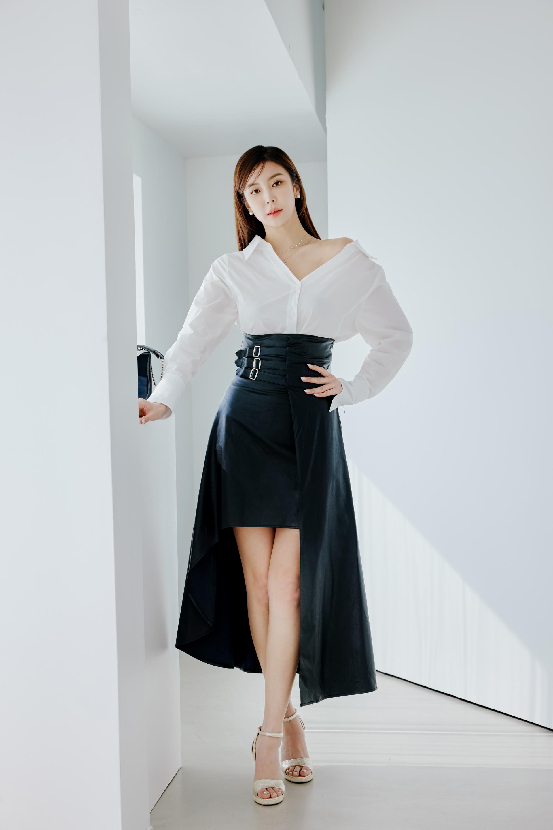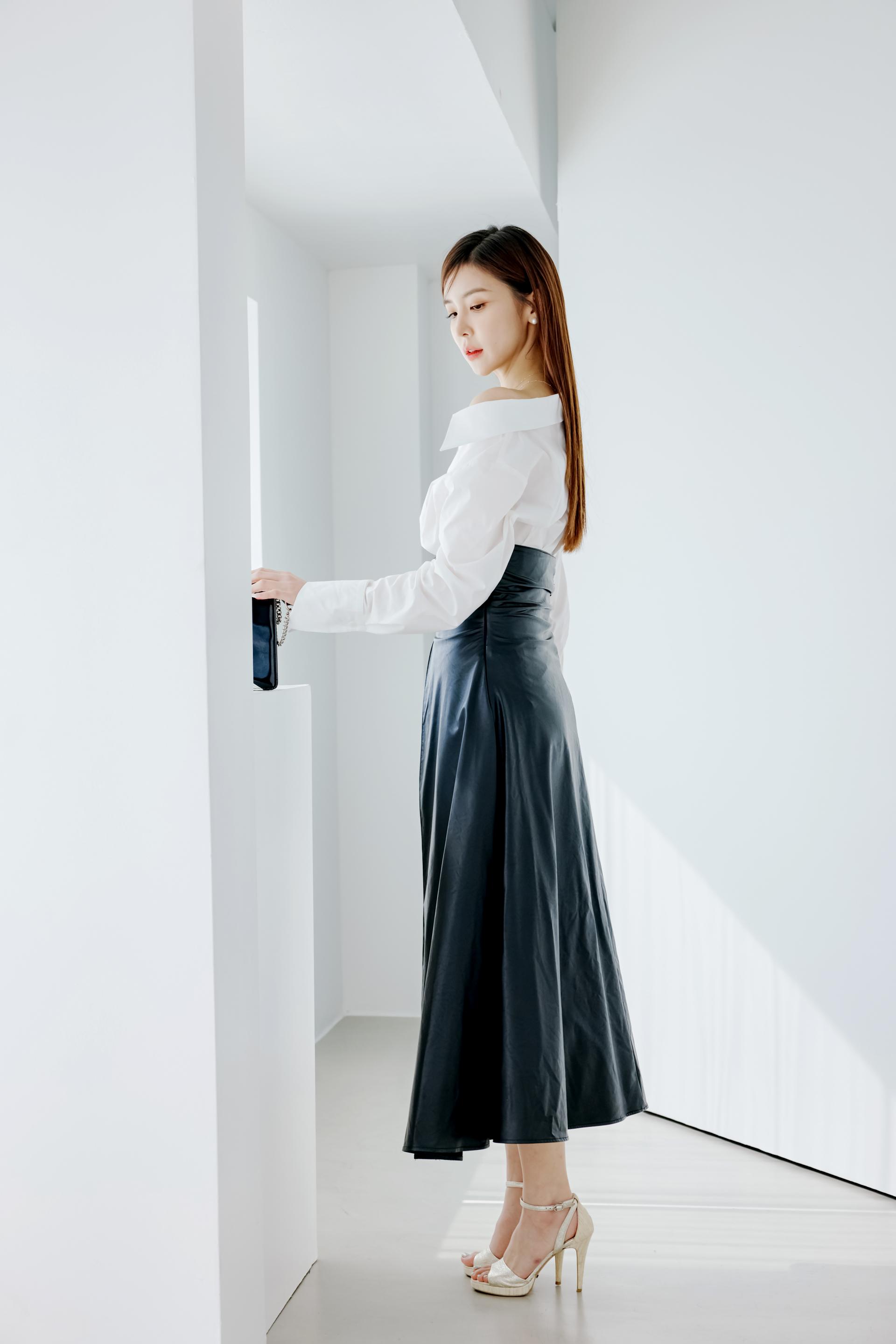 언밸런스한 컷팅이 다리 라인을 길고 세련되게 표현해줍니다.